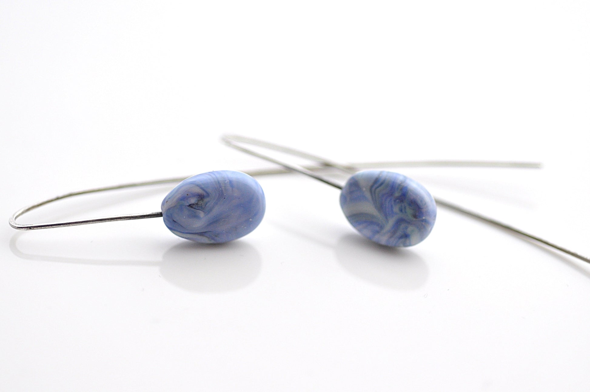 Glass ovals fused onto 9.5cm lengths of Sterling silver wire (0.8mm)