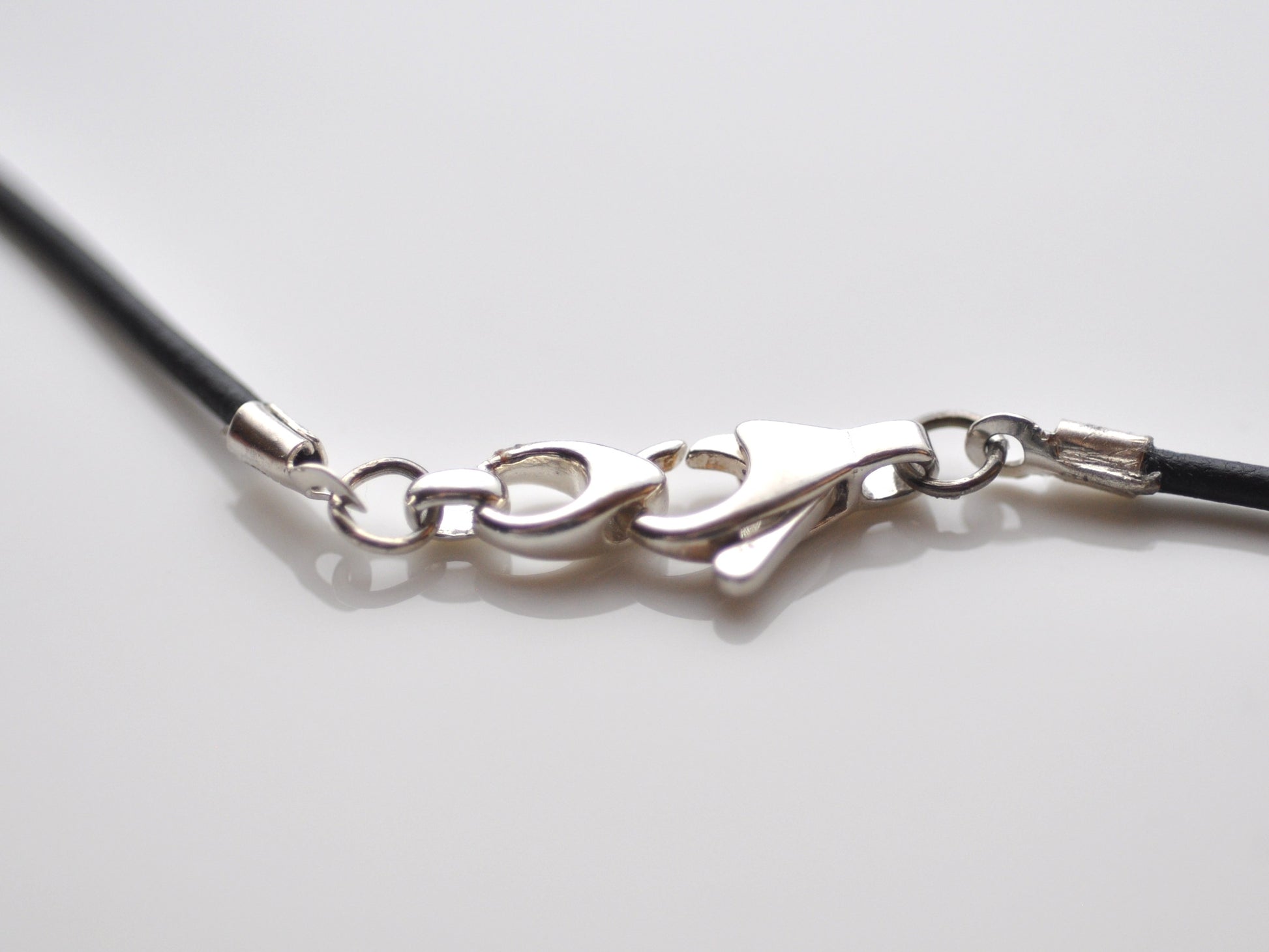 15 barrel shaped lampwork beads in blue, green, turquoise and ivory have been knotted onto 1.9mm brown Greek Leather cord, and finished with sterling silver cord ends and a lobster clasp. Each bead is unique, with no two having the same pattern.